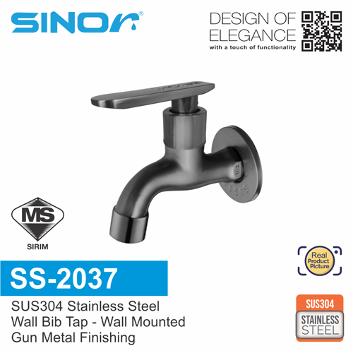 SINOR SS-2037 SUS304 Stainless Steel Wall Bib Tap Wall-Mounted Bathroom Faucet Water Saving Basin Bib Tap