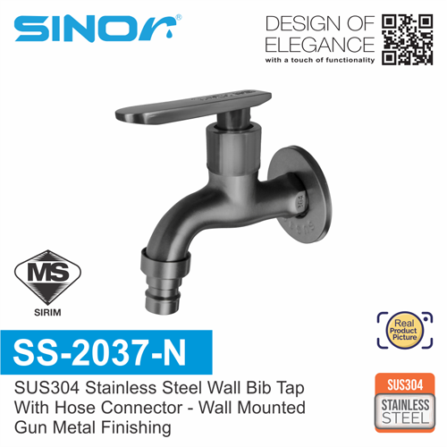 Sinor SS-2037-N SUS304 Stainless Steel Wall Bib Tap With Hose Connector