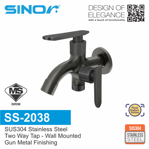 SINOR SS-2038 SUS304 Stainless Steel Two Way Tap Wall Mounted Two Way Tap