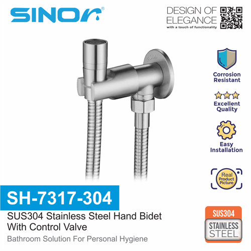 Sinor SH-7317-304 Premium SUS304 Stainless Steel Bathroom Hand Bidet Toilet Spray With Control Valve