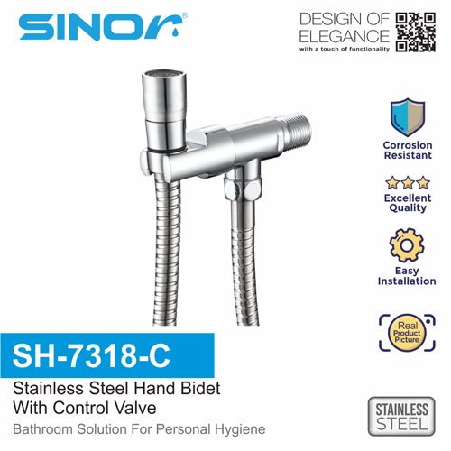 Sinor SH-7318-C Premium Stainless Steel Bathroom Hand Bidet Toilet Spray With Control Valve