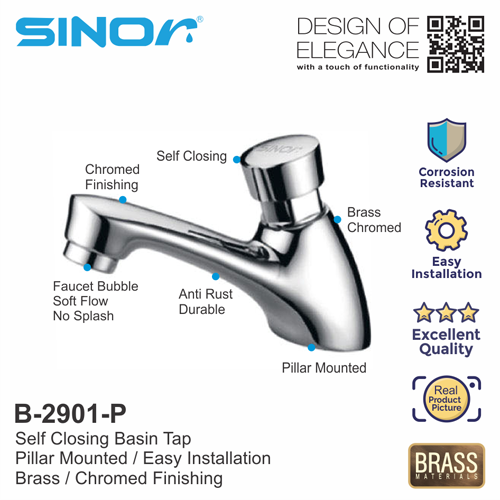 Be the first to review “Sinor B-2901-P Self Closing Basin Tap – Pillar Mounted” Cancel reply