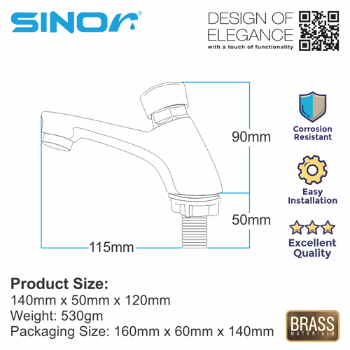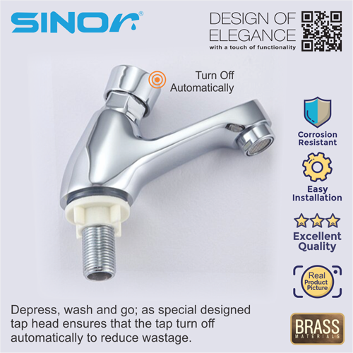 - Depress, wash and go; as special designed tap head ensures that the tap turn off automatically to reduce wastage.