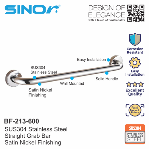 Sinor BF-213-600 SUS304 Stainless Steel Bathroom safety Grab Bar