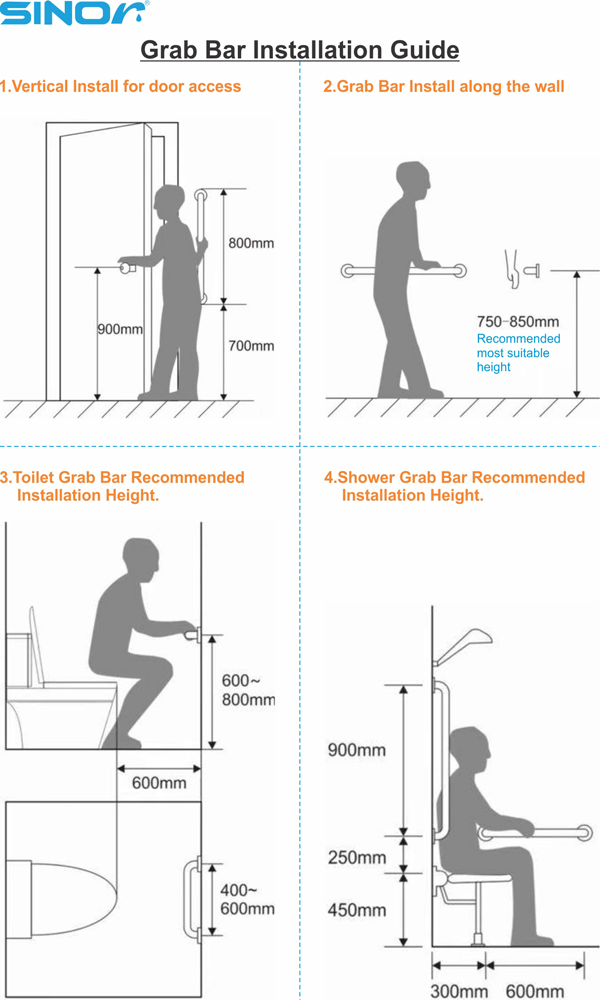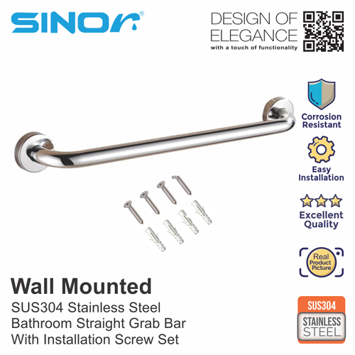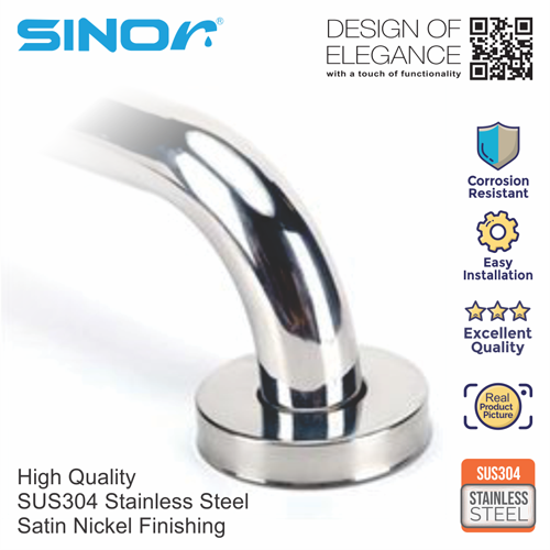 Sinor BF-214 SUS304 Stainless Steel Bathroom safety Bended Grab Bar Original price was: RM90.00.Current price is: RM72.00.