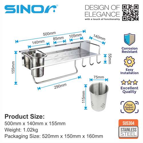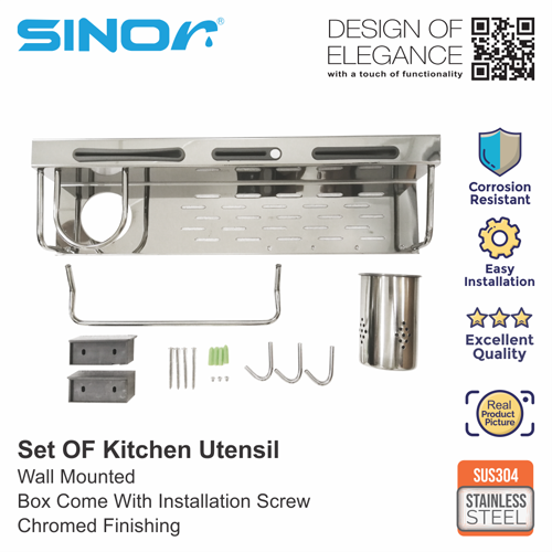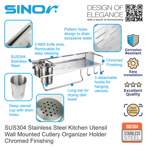 Be the first to review “Sinor BF-515 SUS304 Stainless Steel Kitchen Utensil Wall Mounted Cutlery Organizer Holder” Cancel reply