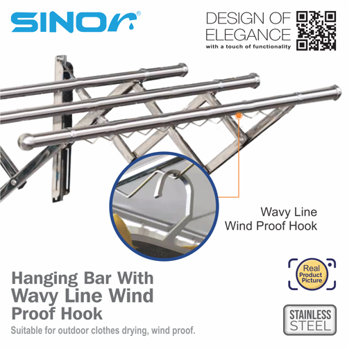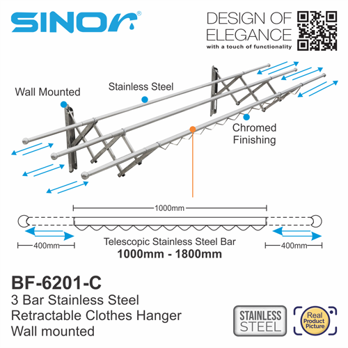 Sinor BF-6201-B 3Bar SUS304 Stainless Steel Retractable Clothes Drying Rack
