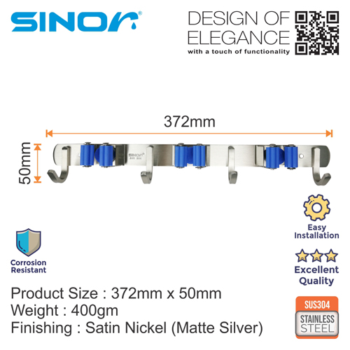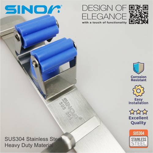 SINOR BF-9011-3 3-Slot SUS304 Stainless Steel Wall-Mounted Broom Holder And 4 Hook Organizer Rack
