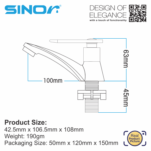 Sinor S-1107 Eco Quality Wall Bib Tap  Original price was: RM27.00.Current price is: RM21.60.