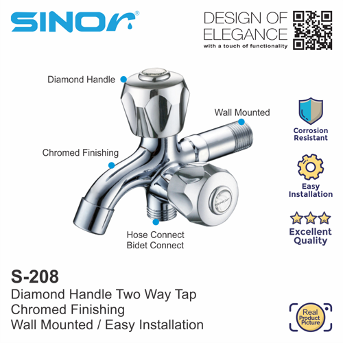 Sinor S-1008 Two Way Tap Bathroom Water Faucet Wall Mounted