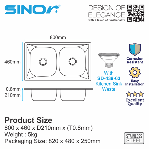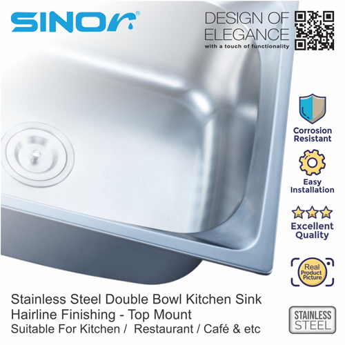 Sinor SN-8046 Stainless Steel Double Bowl Kitchen Sink