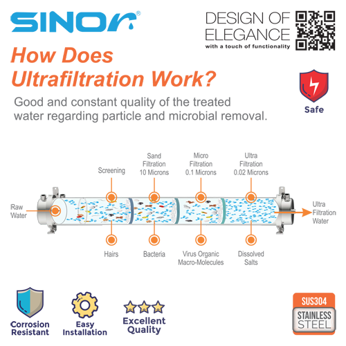 Sinor WF-UF-5001 Ultrafiltration Membrane Outdoor SUS304 Stainless Steel Water Filter